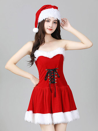 매력적인 스트랩 오프 숄더 섹시 산타걸 원피스